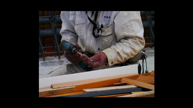 合板、桟木等を丸ノコ等でカットし、釘にて打ち付けパネル化します。