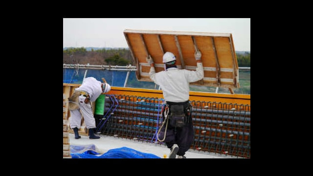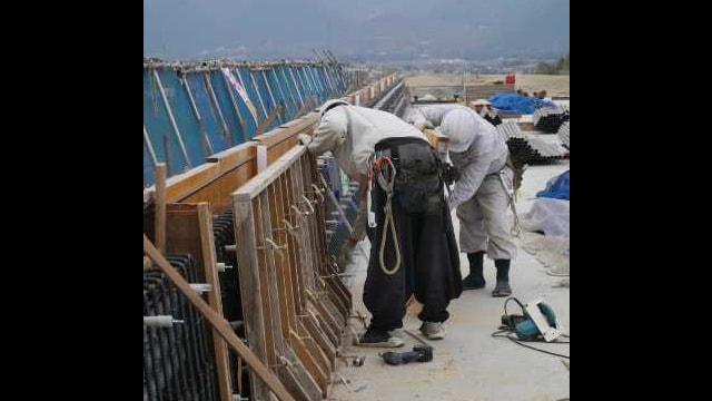 水平、垂直、レベルを組み立て中は常に確認します。 型枠工事の出来具合が、構造物全体の出来具合を決定する大変重要な仕事となります。